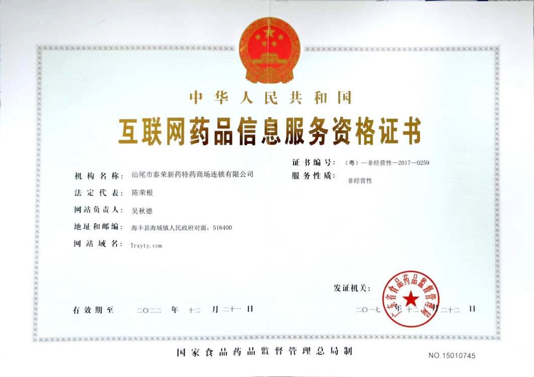 互聯(lián)網(wǎng)藥品信息服務(wù)資格證書(shū) :(粵)一非經(jīng)營(yíng)性- -2022- -0265